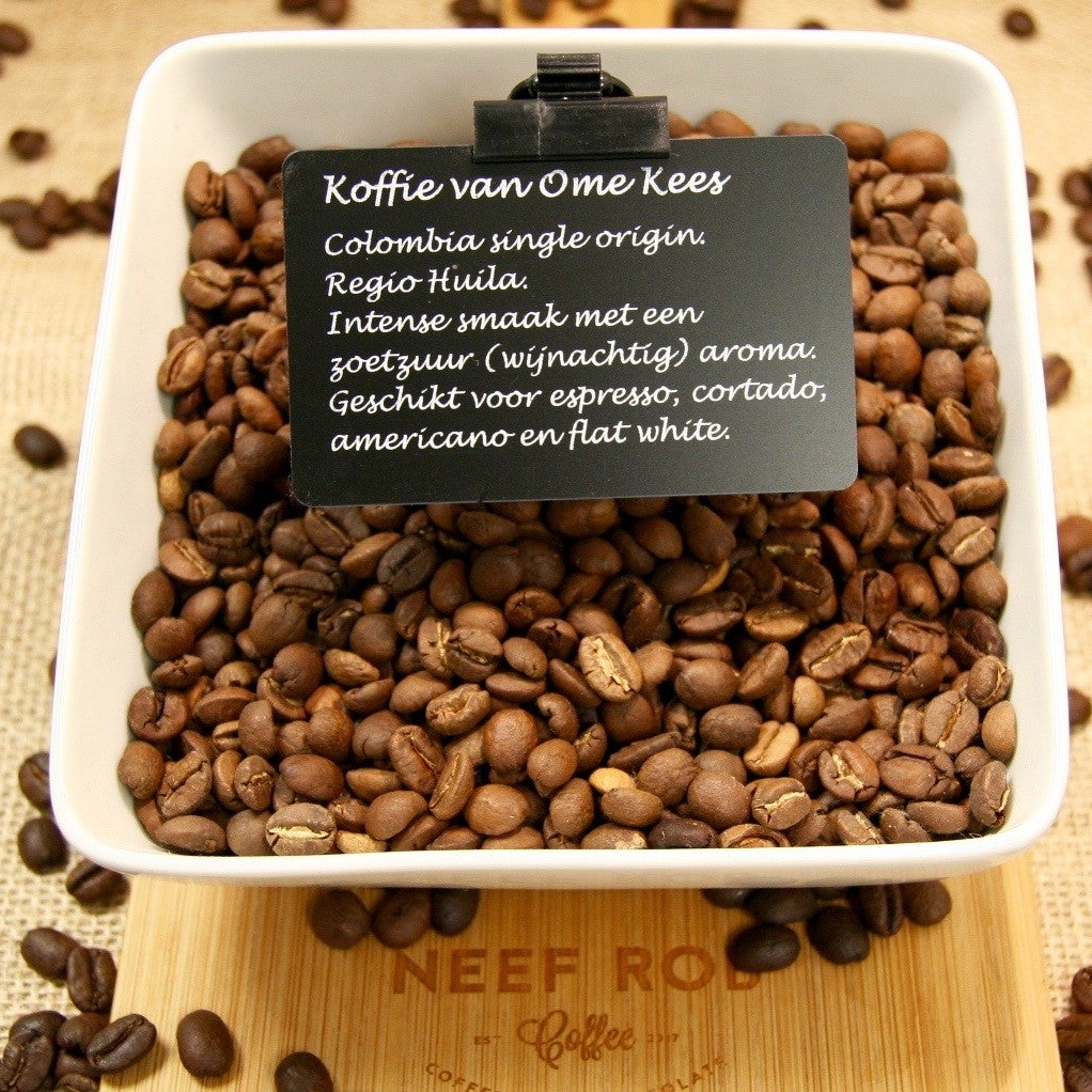 (NL) Koffiebonen van ome Kees. Rinse (fris) Colombia single origin.(ook geserveerd in onze schenkerij)