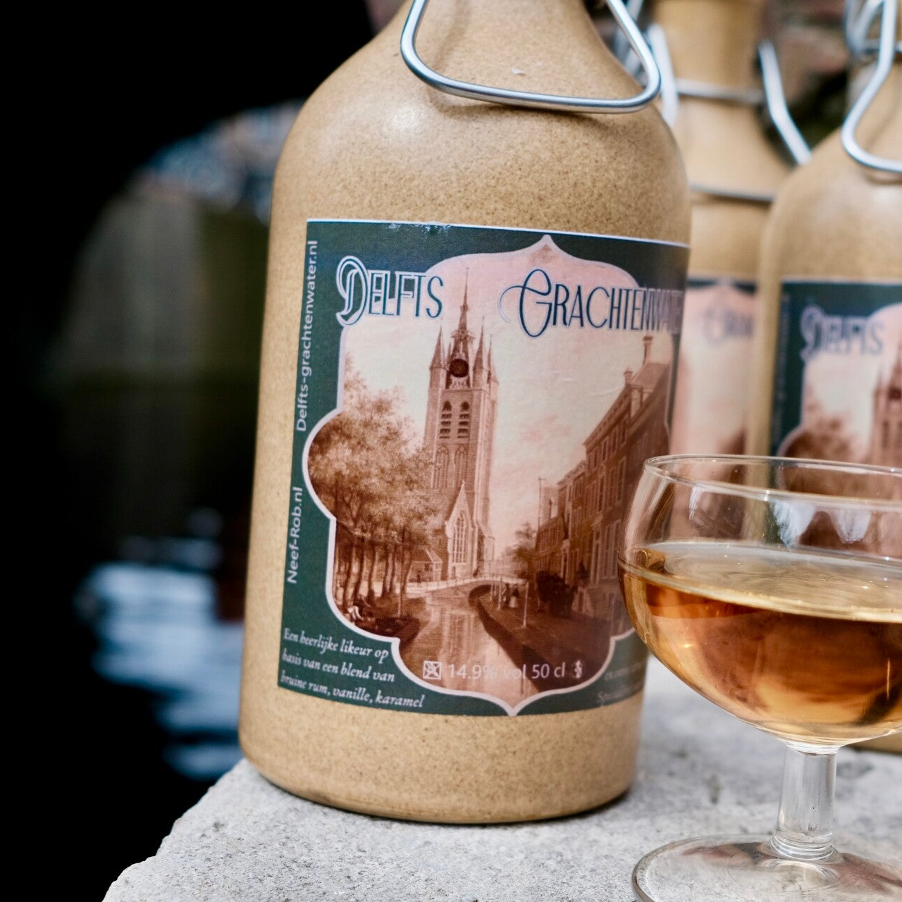 Delfts Grachtenwater onze ambachtelijke Rum likeur in stenen kruik