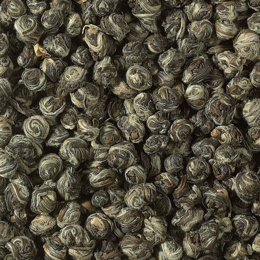 (D) China Jasmine Dragon Pearls Tee ist eine Variante des bekannten grünen Tees und zeichnet sich durch seine zarte, blumige Note aus. Wie der Name schon sagt, stammt dieser Tee aus China und wird dort seit Jahrhunderten angebaut und getrunken. Der Tee bildet kleine, gerollte Perlen aus frisch gepflückten Blättern der Teepflanze Camellia sinensis. Die Zubereitung von China Jasmine Dragon Pearls Tee ist sehr einfach: 3-4 Perlen reichen pro Tasse und sollten mit