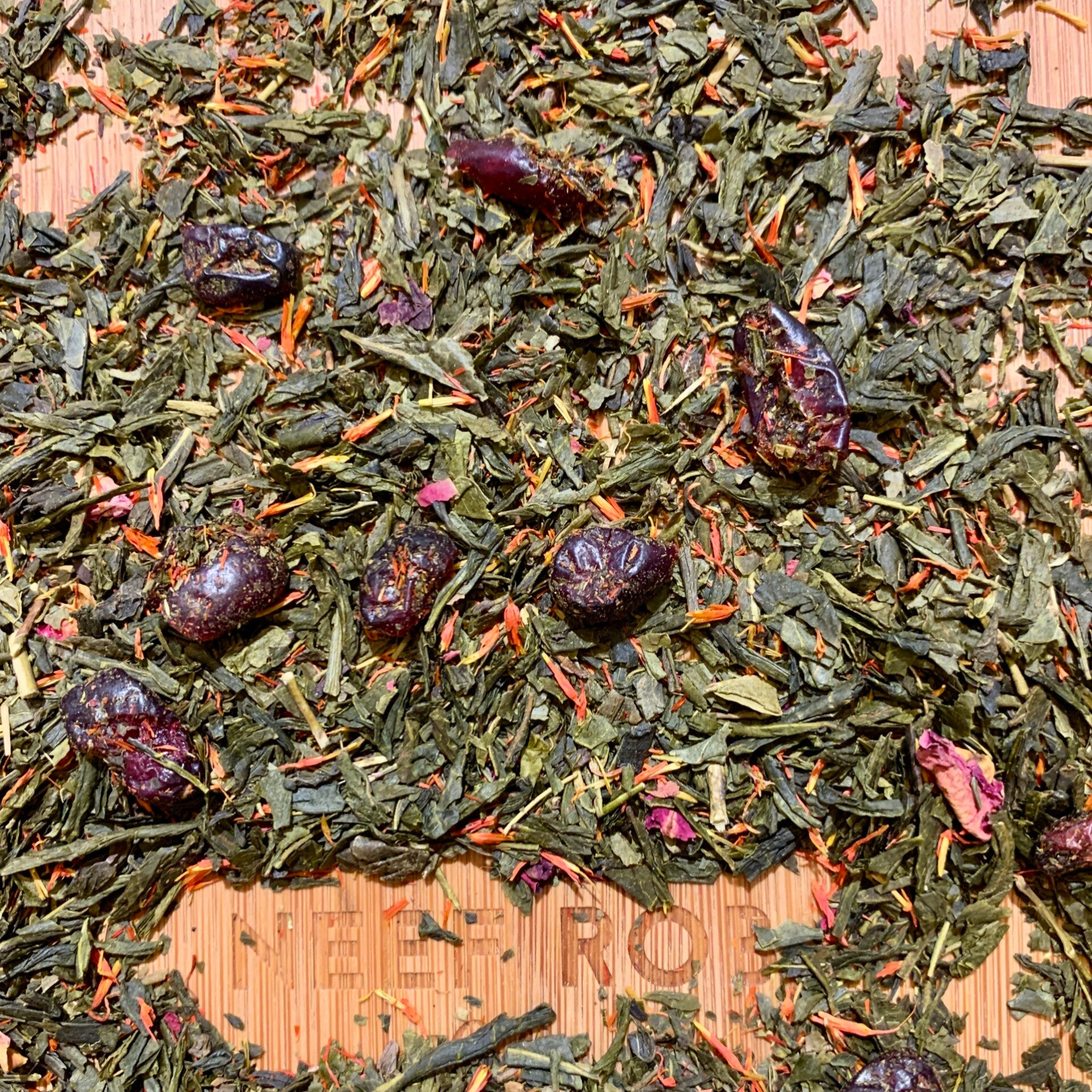 De smaak van cranberries combineert prima met het karakter van de Groene Thee en het fruitige aroma.