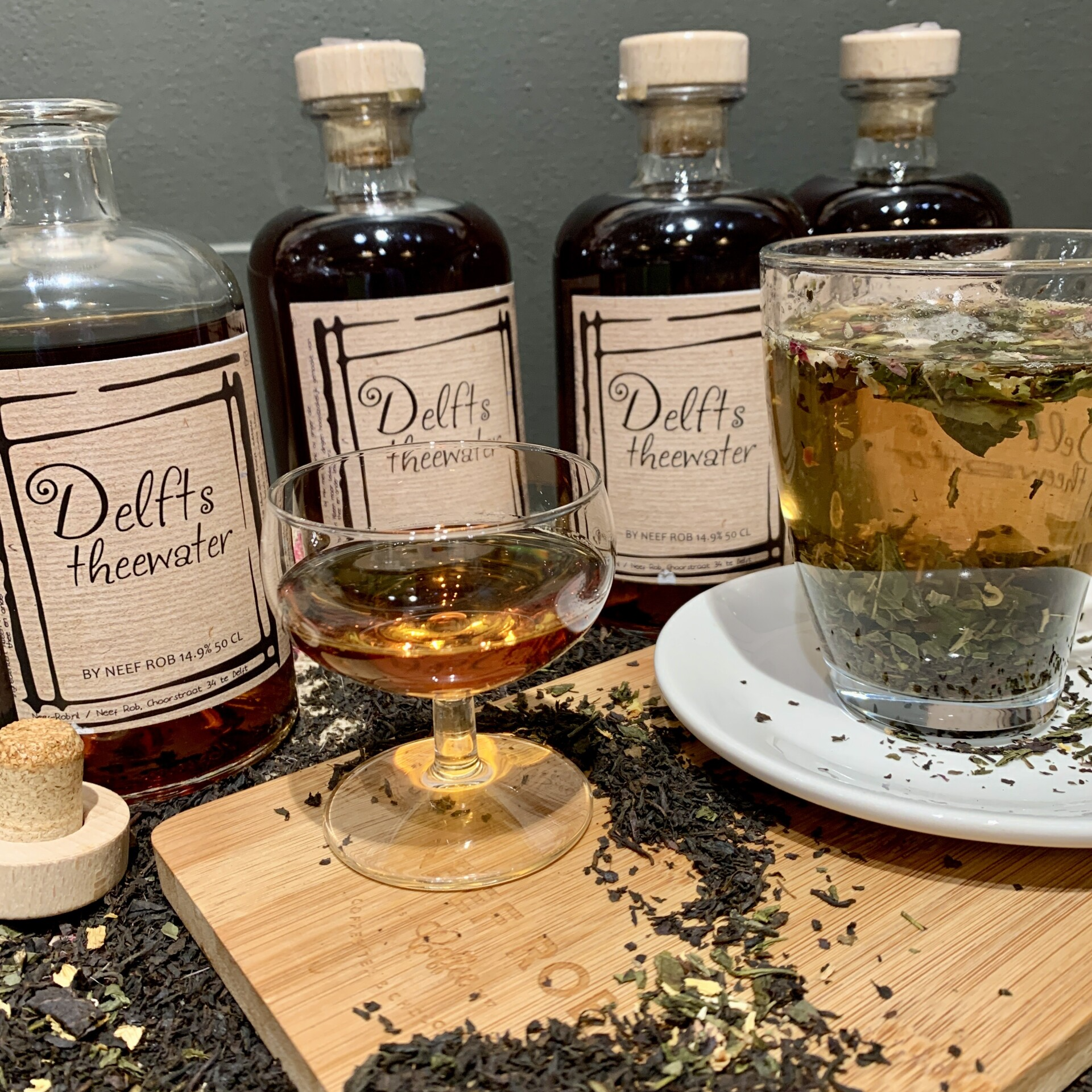 It was inevitable: as Cousin Rob with our almost 100 different kinds of loose tea, we also wanted to make our own tea liqueur. After a long time of combining flavors we finally succeeded, Delft tea water has become a fact.