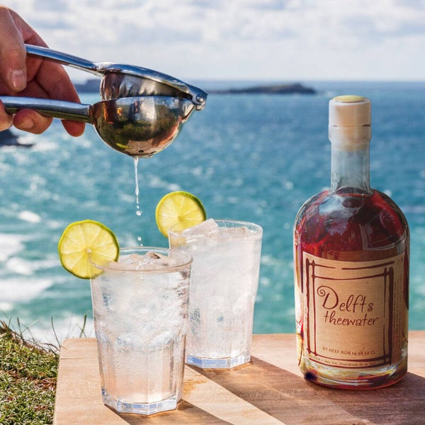 Het kon niet uitblijven: als Neef Rob met onze bijna 100 verschillende soorten losse thee, wilden we ook onze eigen theelikeur maken. Na lang combineren van smaken is het dan eindelijk gelukt, Delfts theewater is een feit geworden.