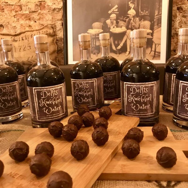(D) Delftse Kwebbelballen, das war klar, nach unserem eigenen Kaffeelikör "Delfts Kwebbelwater", der nach einem alten Familienrezept hergestellt wird. Wir baten Tom (bekannt von der Librije und unseren anderen Schokoladen), sich unseren handgemachten Kaffeelikör anzusehen und sein ganzes Wissen über Schokolade einzusetzen, um etwas Besonderes zu kreieren. Siehe da, die Delfter Kwebbelballen sind geboren. Kwebbelballen sind, wie der Name schon sagt, runde Kugeln aus dunkler Schokolade, gefüllt mit einer Ganache aus unserem DelftseKwebbelwasser. Das Tolle daran ist, dass der reine Kakao von Valrhona und unser Delftse Kwebbelwater wunderbar zusammenpassen und den Geschmack des jeweils anderen noch verstärken. Die Delftse Kwebbelballen sind in unserem Geschäft pro Stück erhältlich, in unserem Webshop jedoch nur in einer Luxusverpackung mit Manöververschluss und gefüllt mit 9 Stück Kwebbelballen.