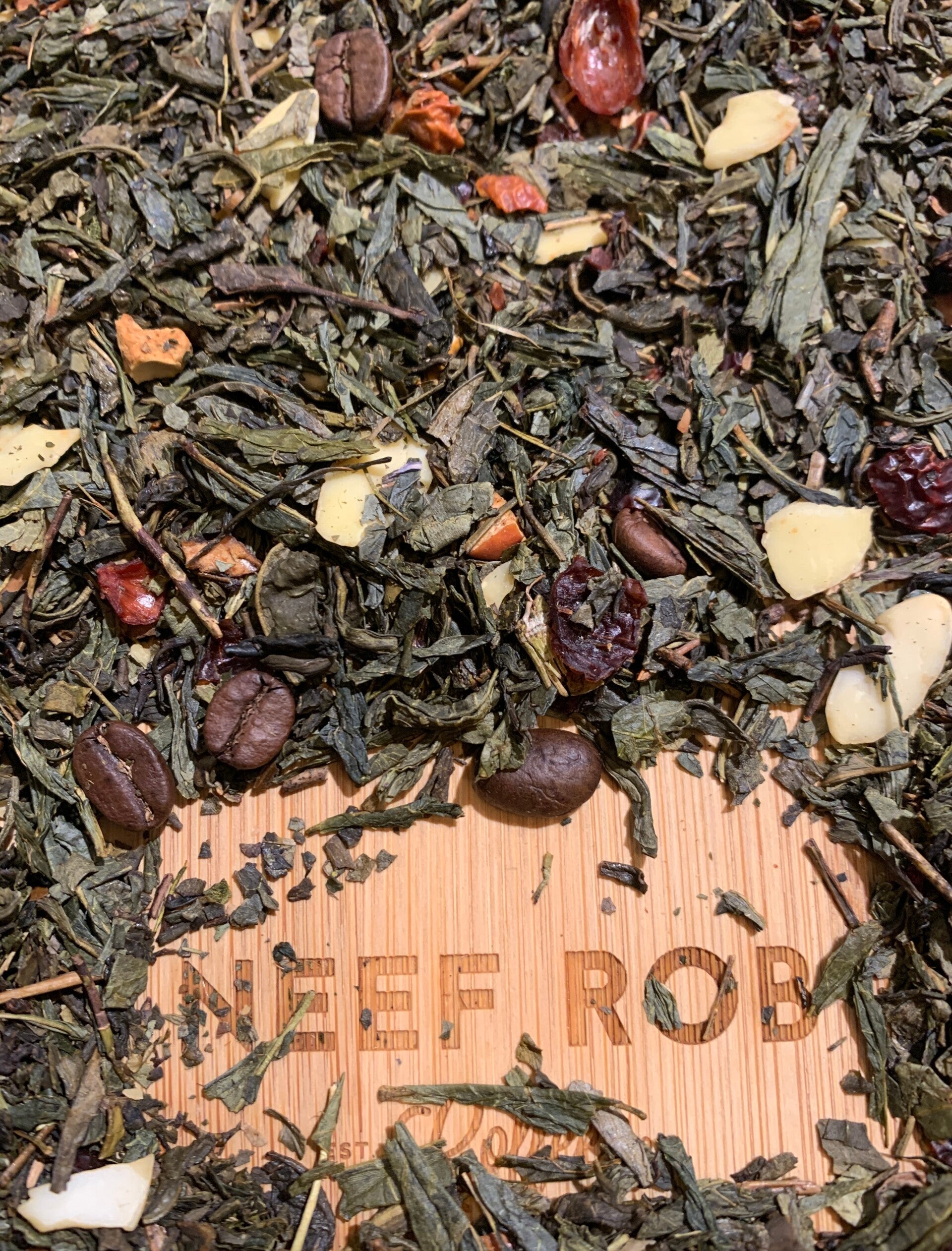 Ingredients Green tea, rose hip, coffee beans, almonds, apple, aroma.